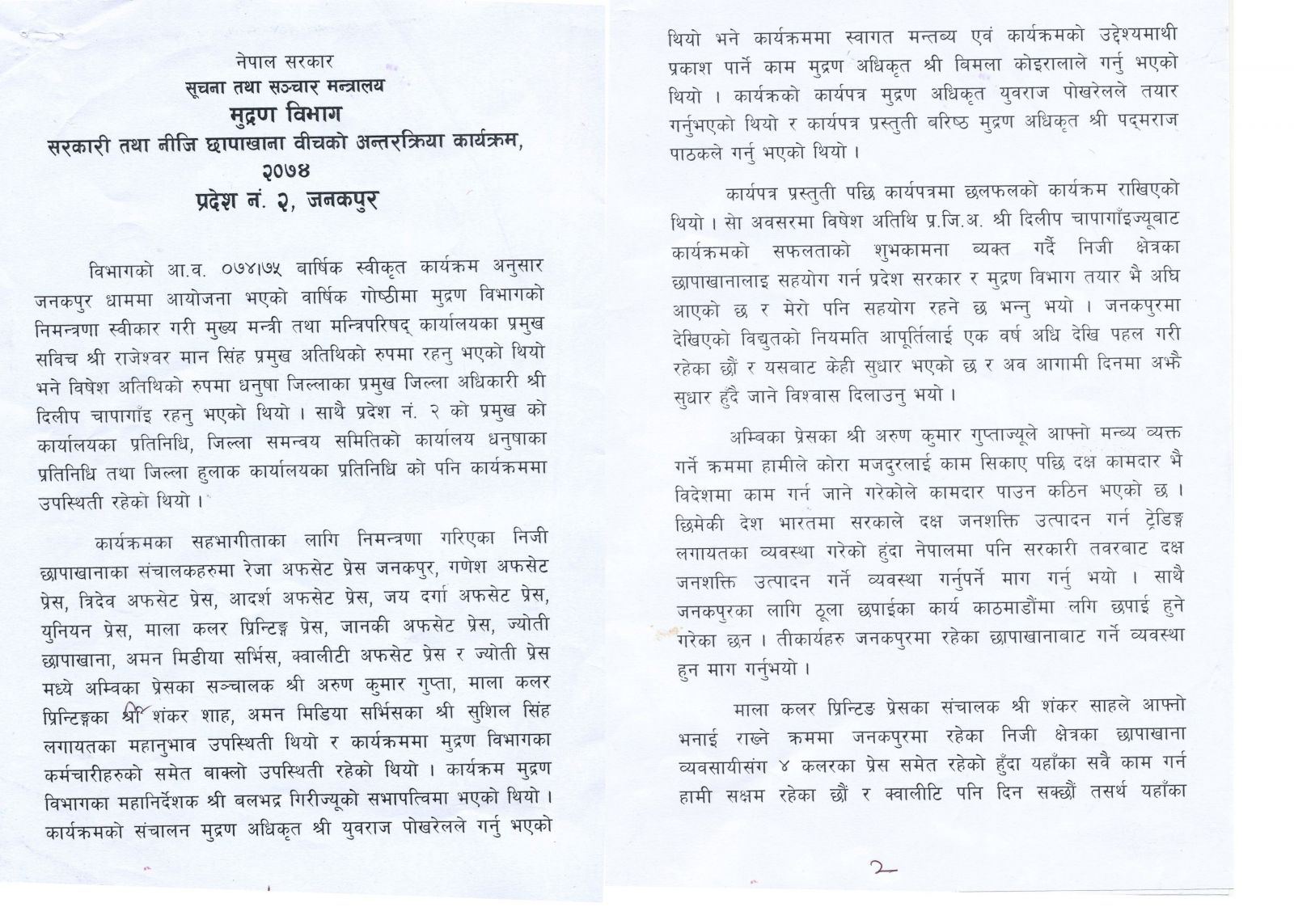 सरकारी तथा निजी छापाखाना बिचको अन्तरक्रिया कार्यक्रम